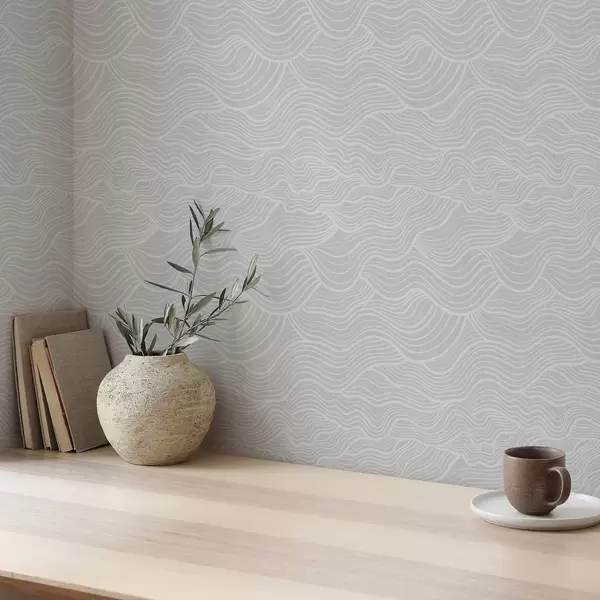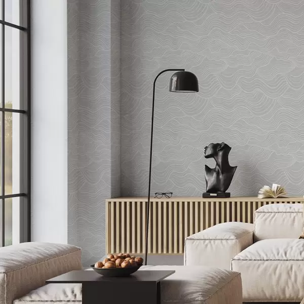 Behang Golvormig ornament: lichte lijnen op grijze achtergrond Nr. a00681v2