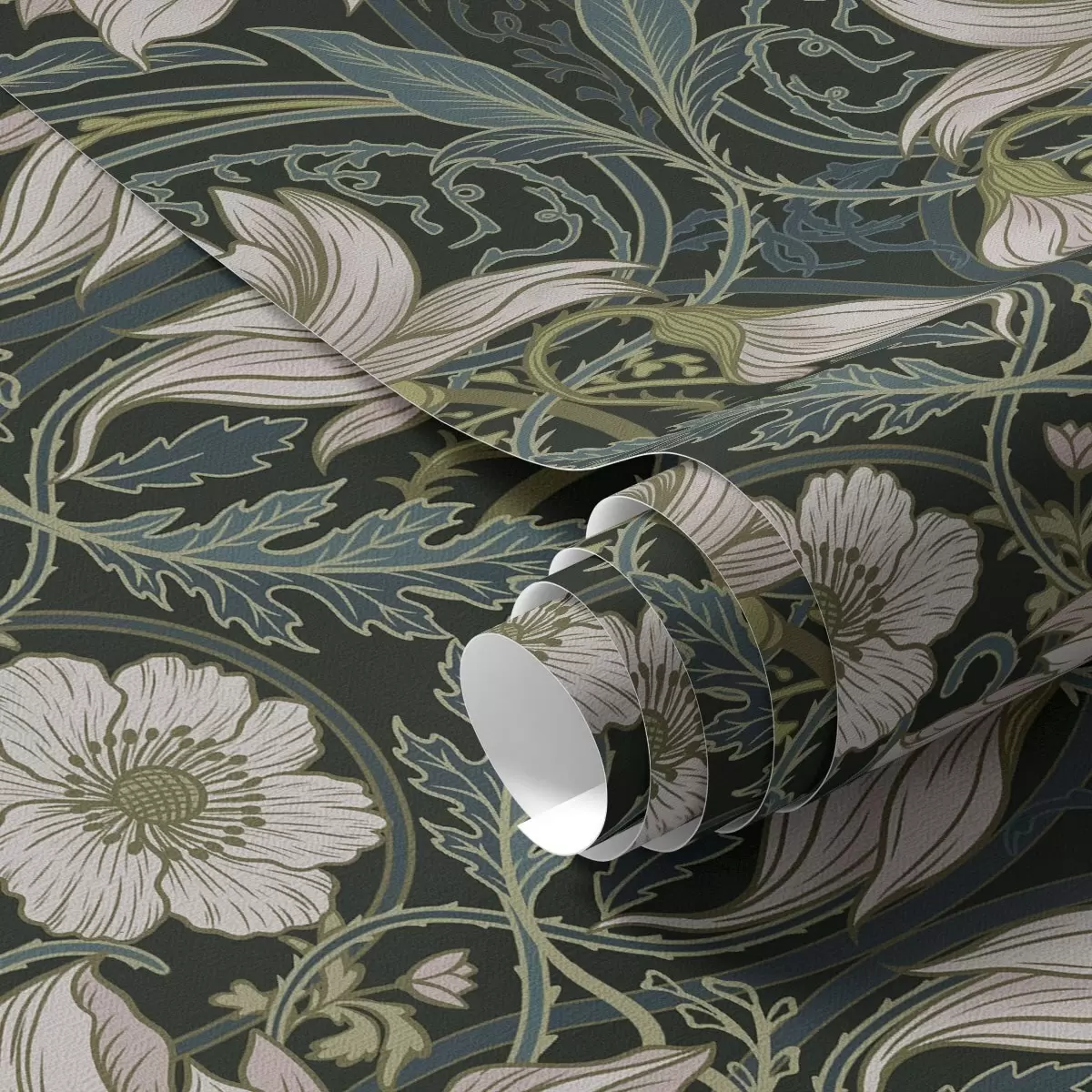 Behang Art Nouveau-compositie met lelies op een donkere achtergrond Nr. a00696