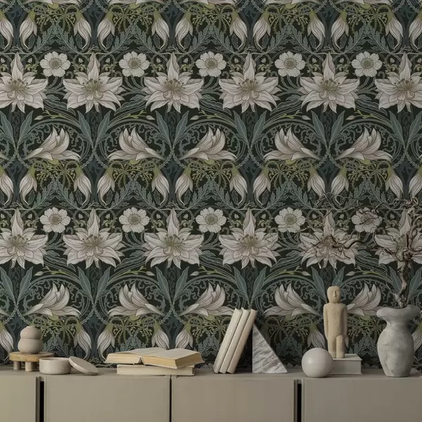 Behang Art Nouveau-compositie met lelies op een donkere achtergrond Nr. a00696