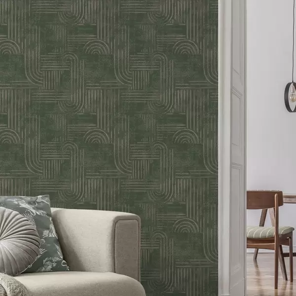 Behang Geometrisch patroon met bogen in een groen kleurenpalet Nr. a00697