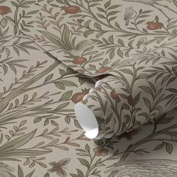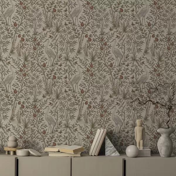 Behang Vogels tussen granaatappelbomen in een natuurlijke omgeving Nr. a00699