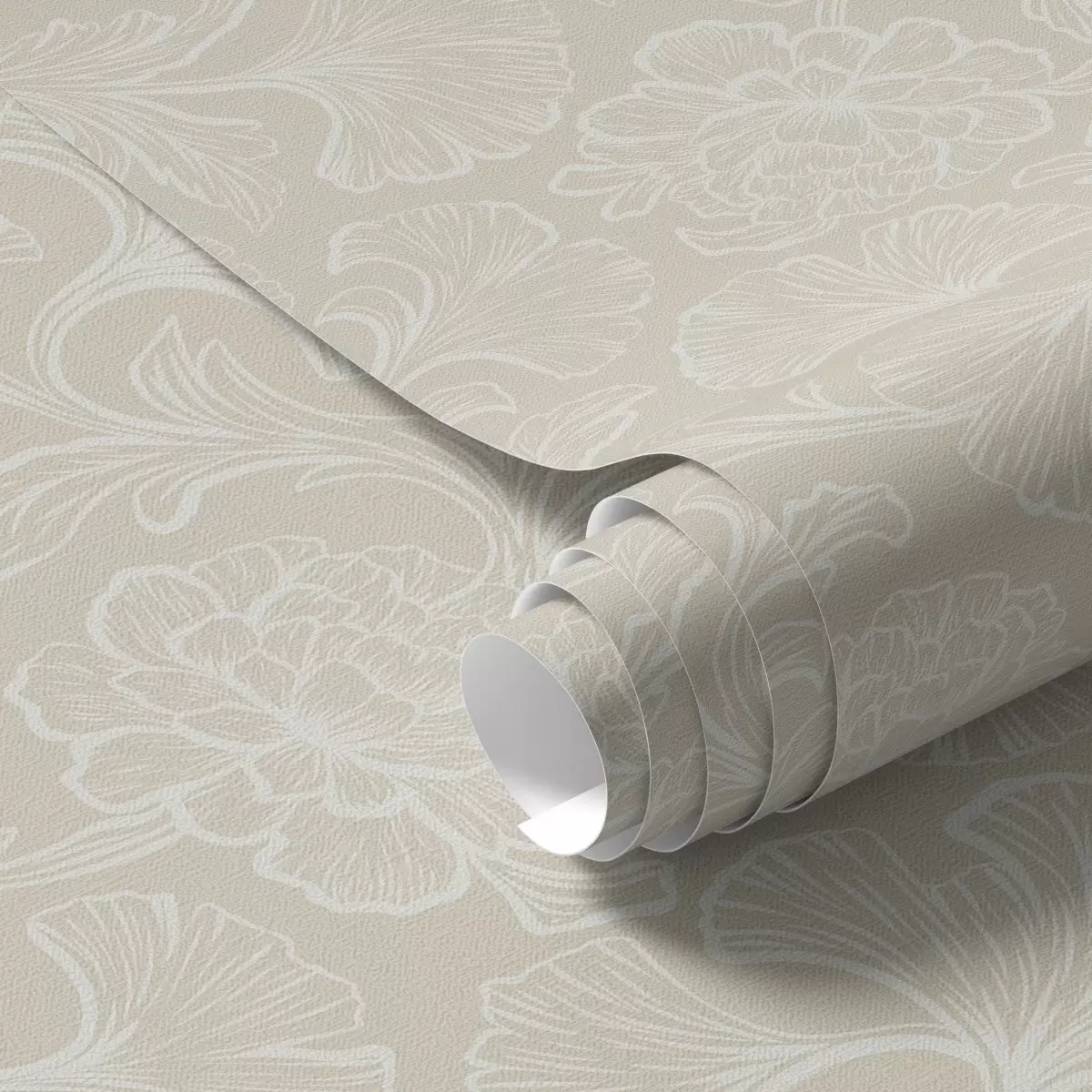 Behang Lichtpatroon met ginkgo en pioenrozen Nr. a00700