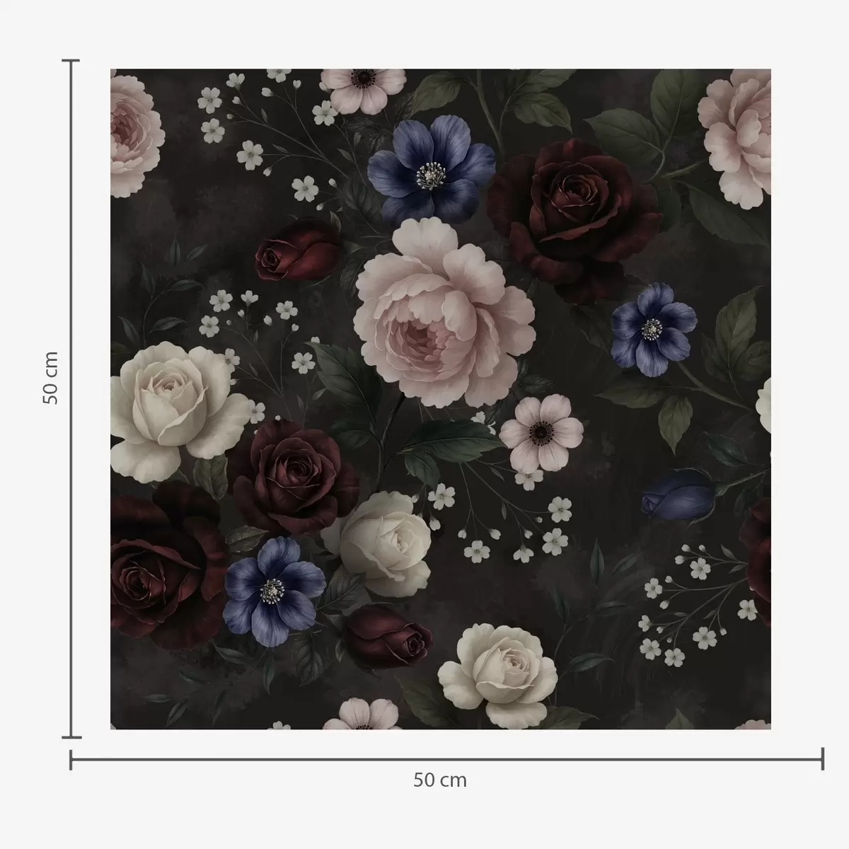 Behang Donkere rozen, anemonen en pioenrozen op een donkere achtergrond Nr. a00704
