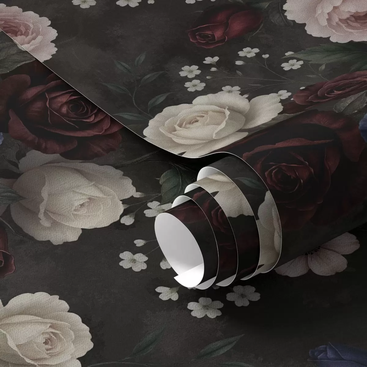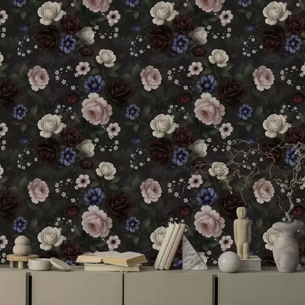 Behang Donkere rozen, anemonen en pioenrozen op een donkere achtergrond Nr. a00704