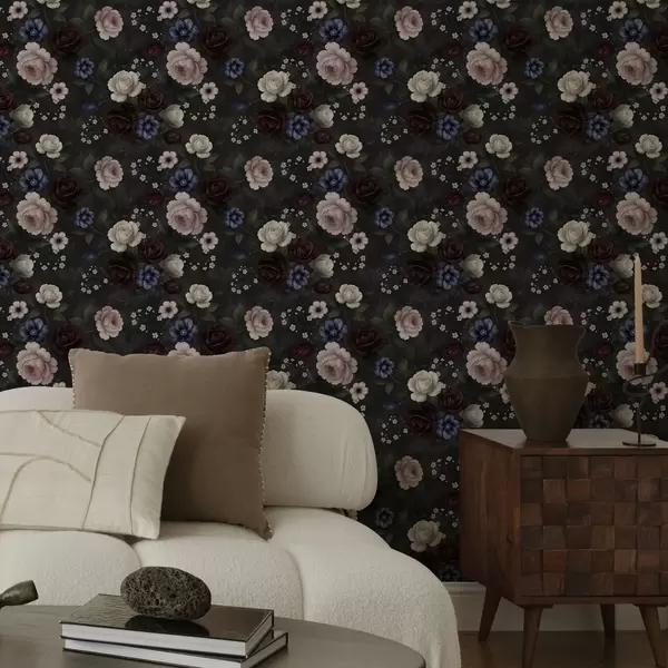 Behang Donkere rozen, anemonen en pioenrozen op een donkere achtergrond Nr. a00704
