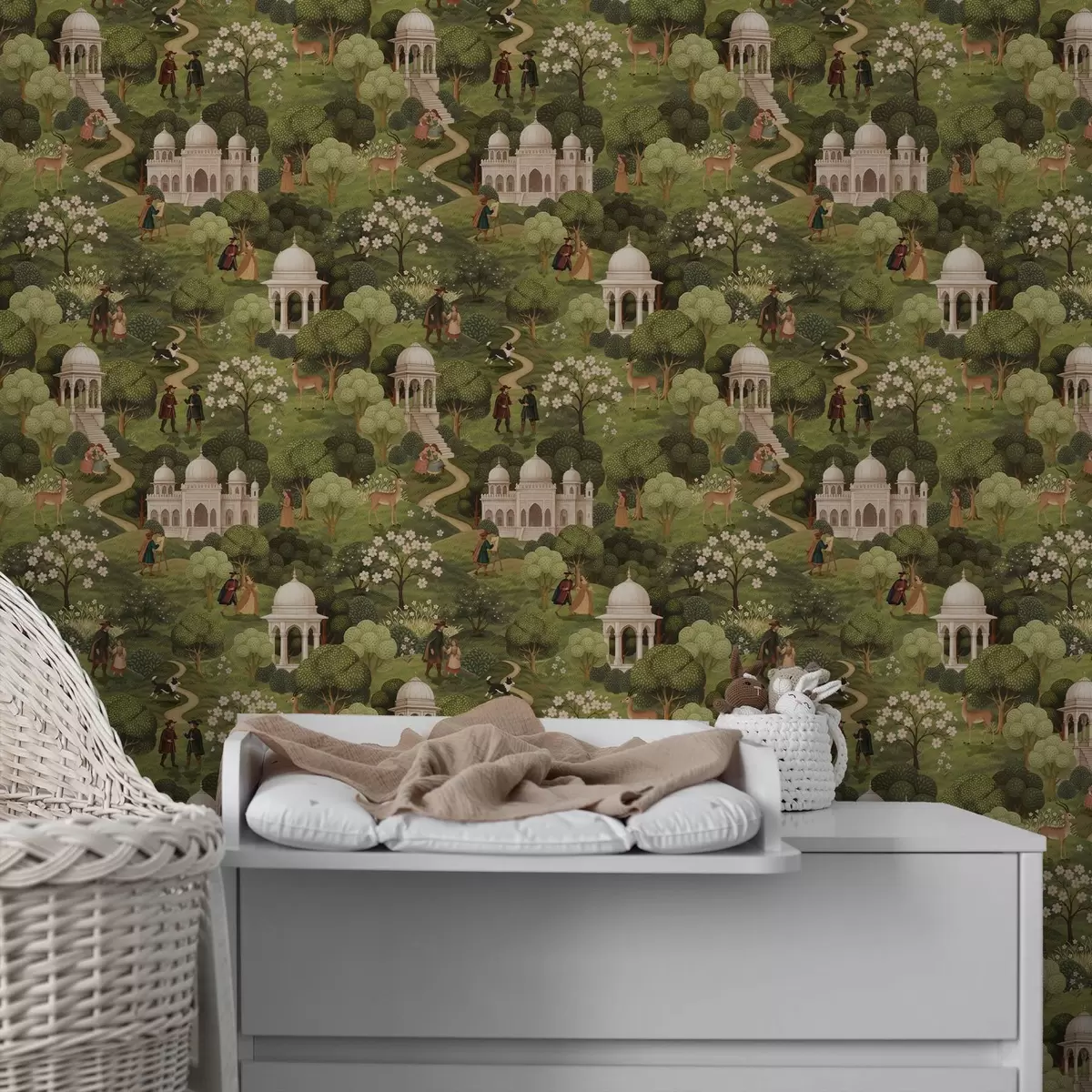 Behang Parktafereel met bomen en architectuur in landschapsstijl Nr. a00705
