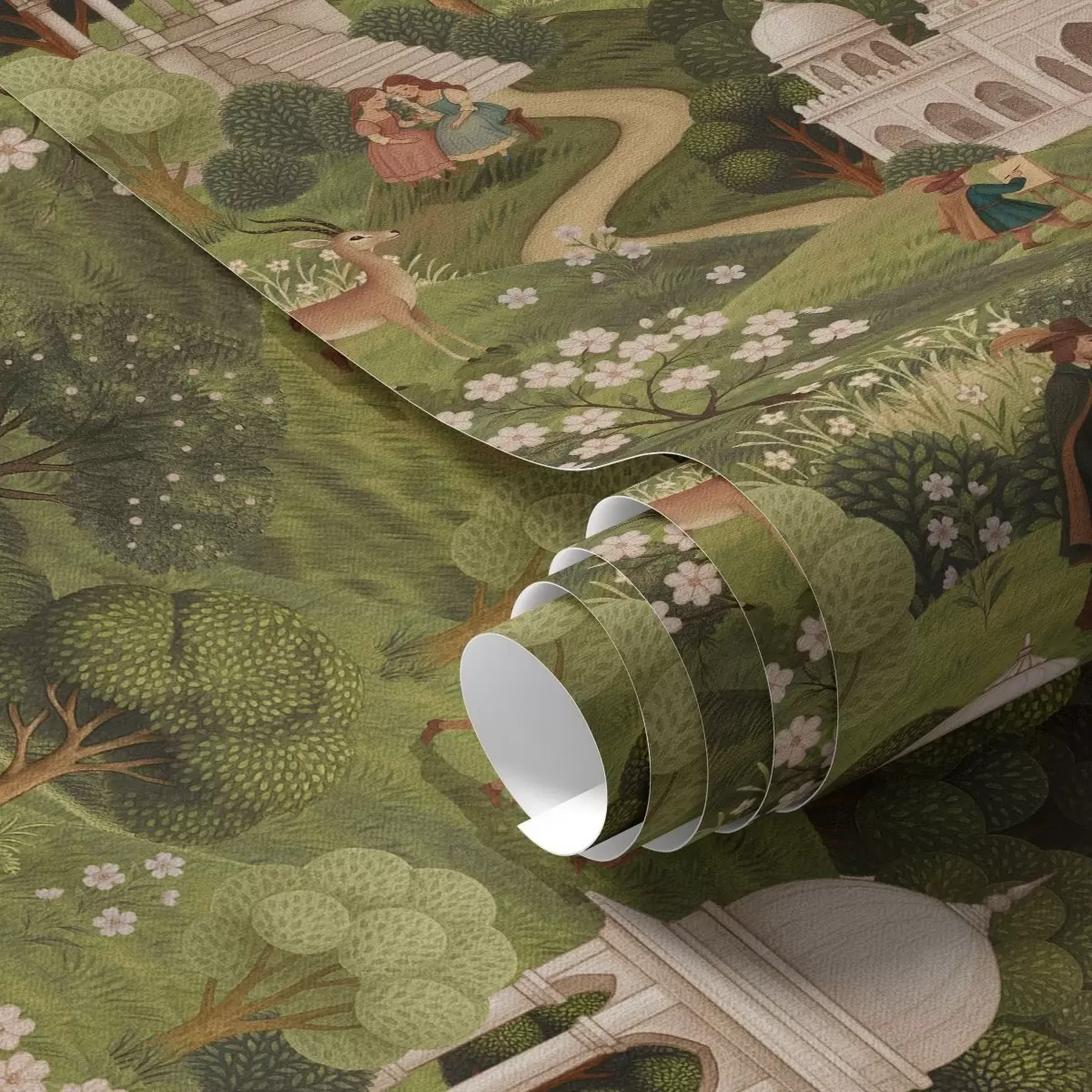 Behang Parktafereel met bomen en architectuur in landschapsstijl Nr. a00705
