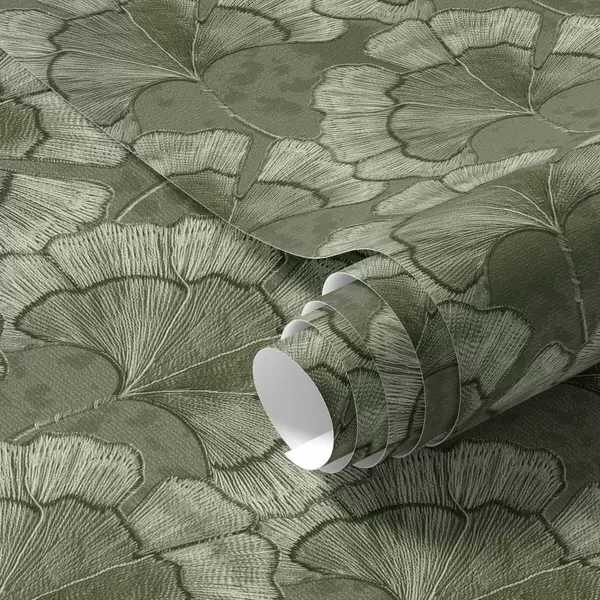 Behang Grafisch patroon met ginkgo in een koel groen kleurenpalet Nr. a00709