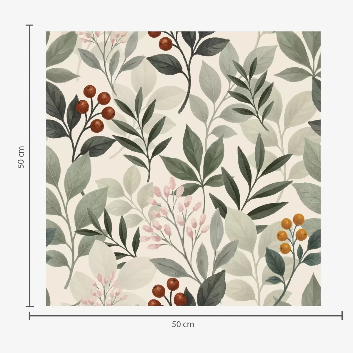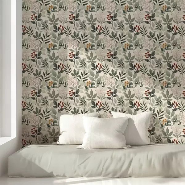 Behang Bladeren met bessen, lichte achtergrond Nr. a00713