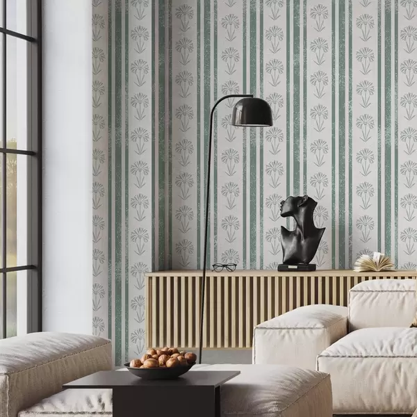 Behang Lintpatroon met bloemen in groene tinten Nr. a00732
