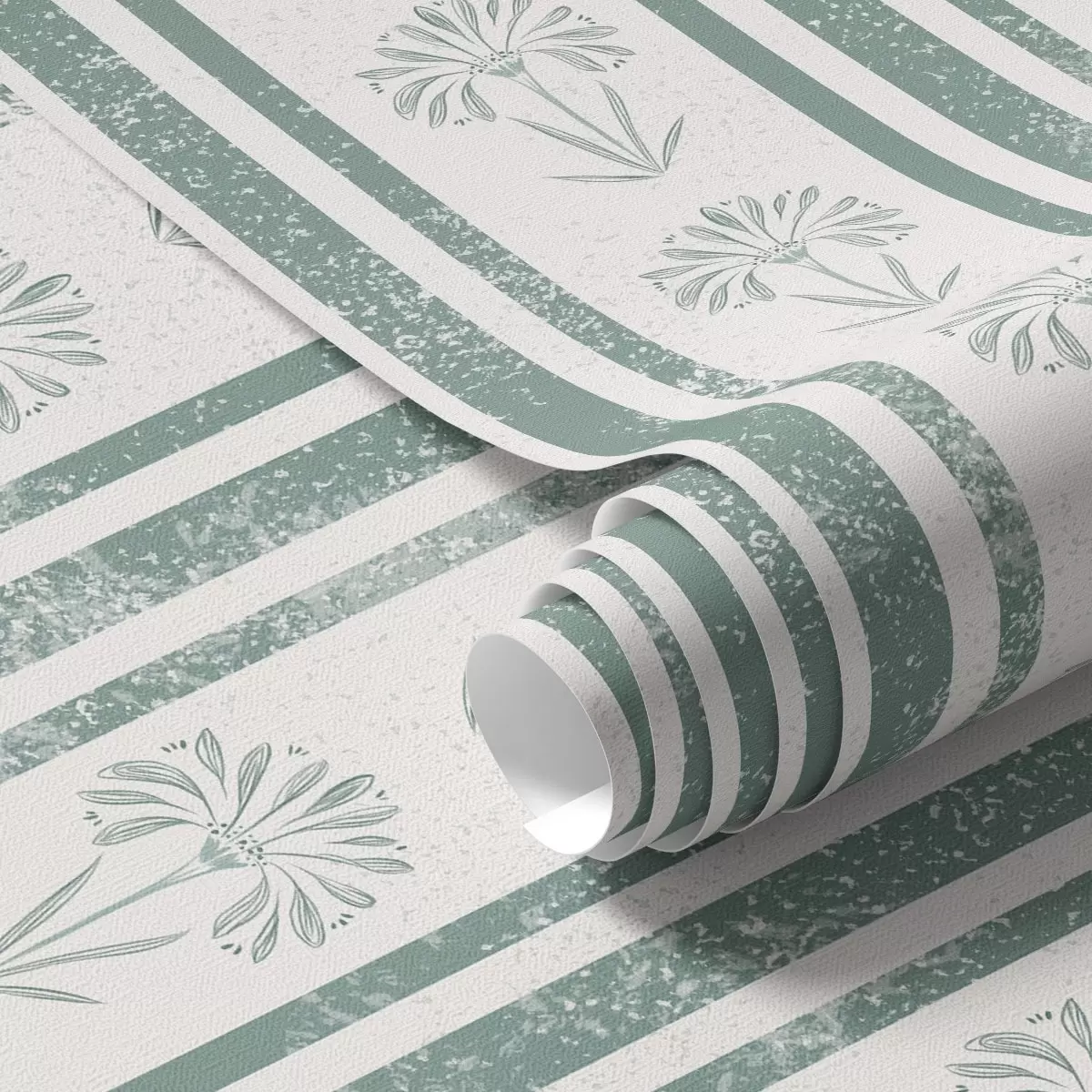 Behang Lintpatroon met bloemen in groene tinten Nr. a00732