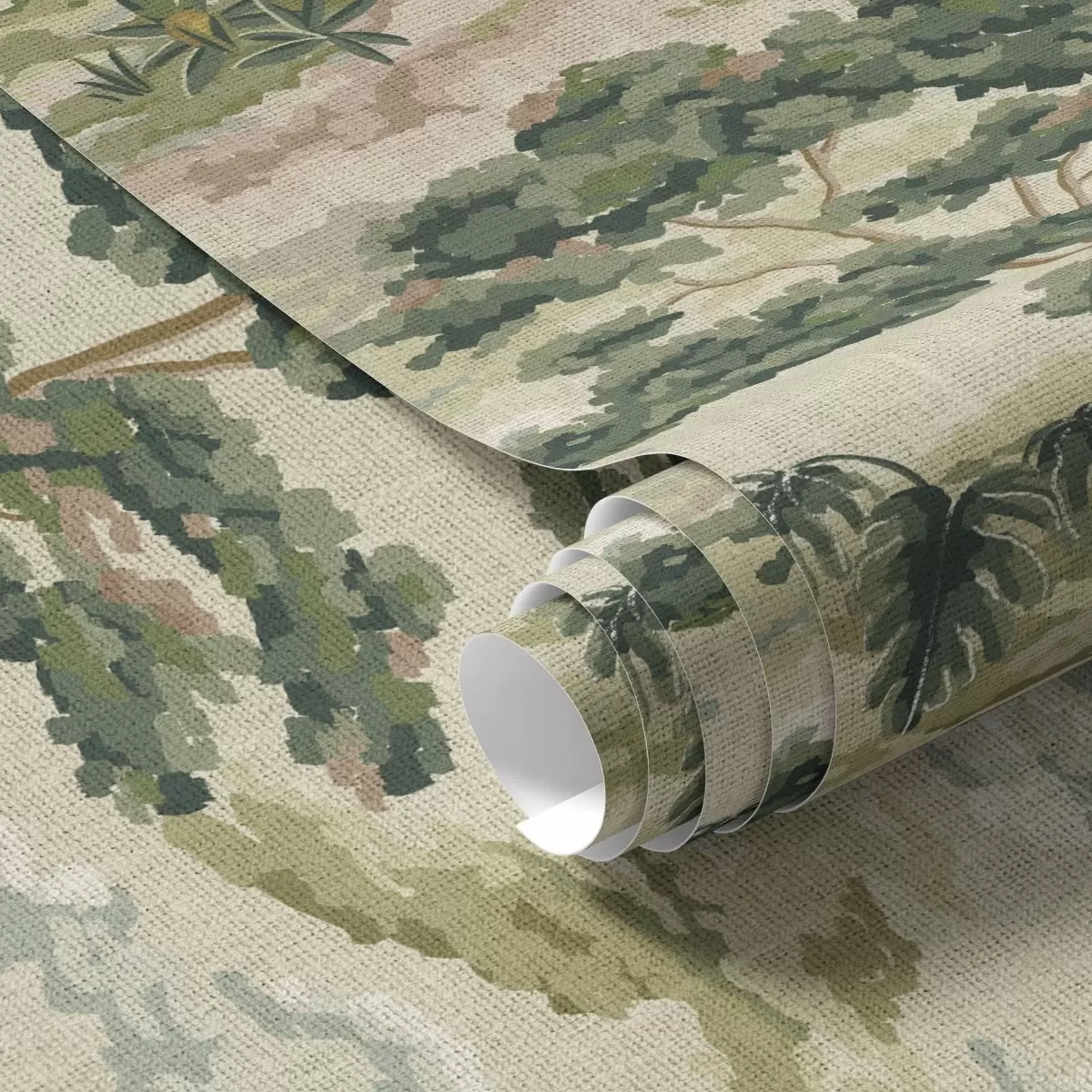 Behang Landschap met rivier, bomen en palmbomen in zachte tinten Nr. a00736