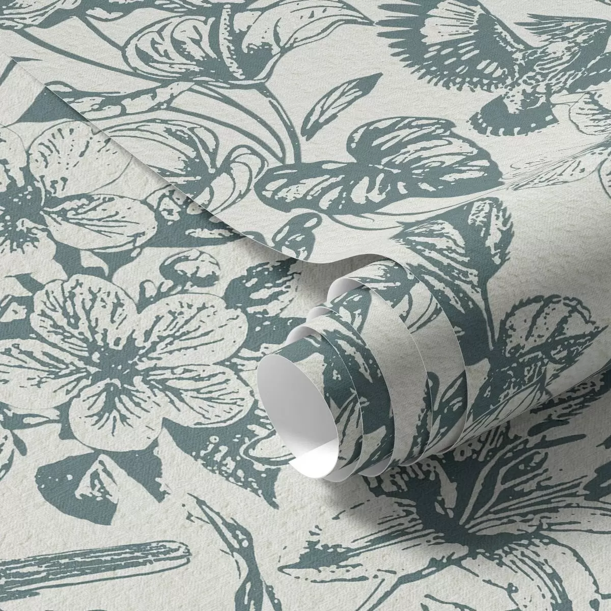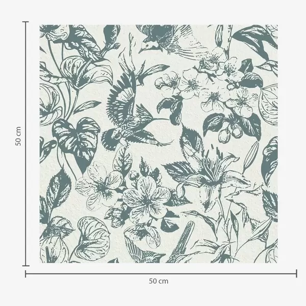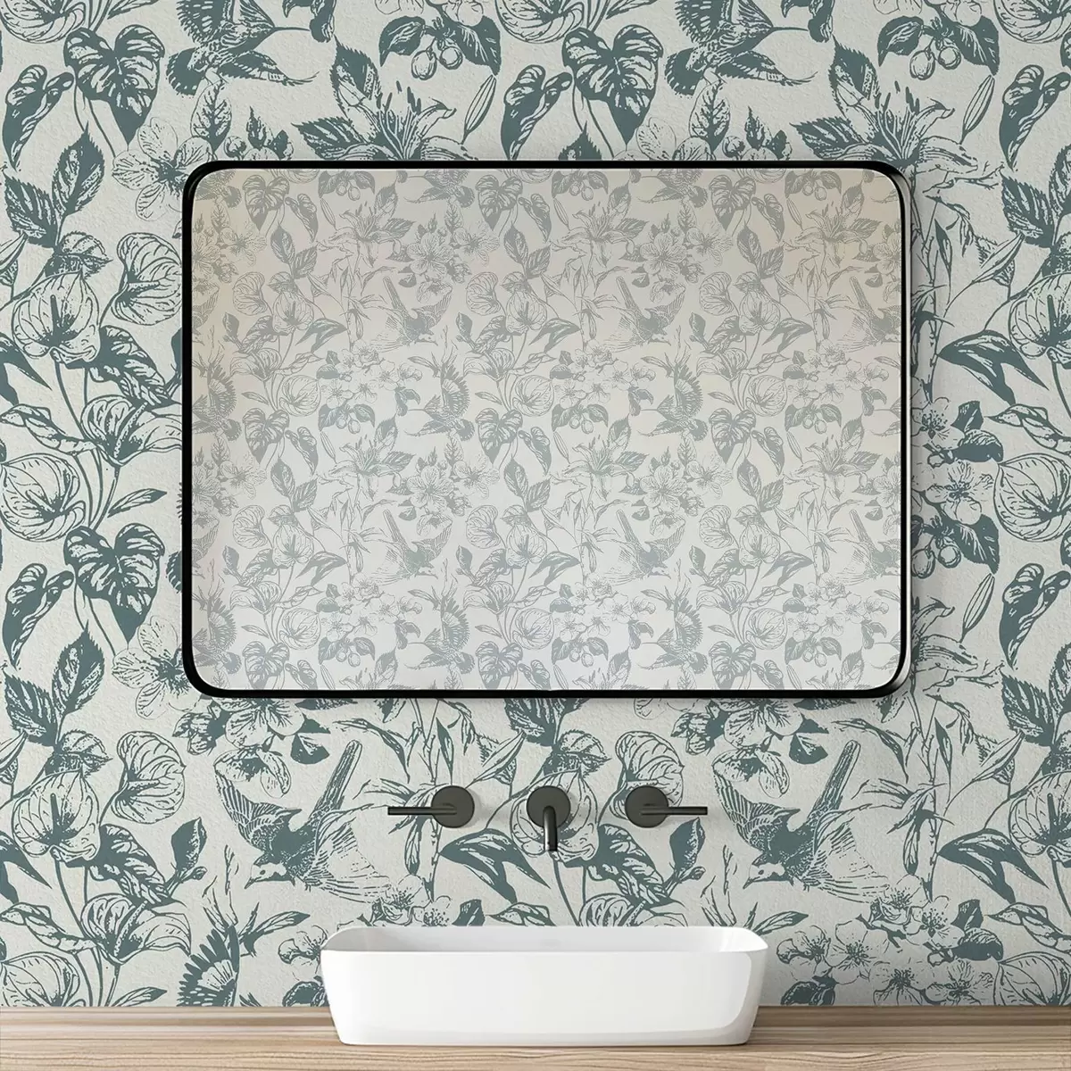 Behang Monochroom bloemenornament met vogels Nr. a00737