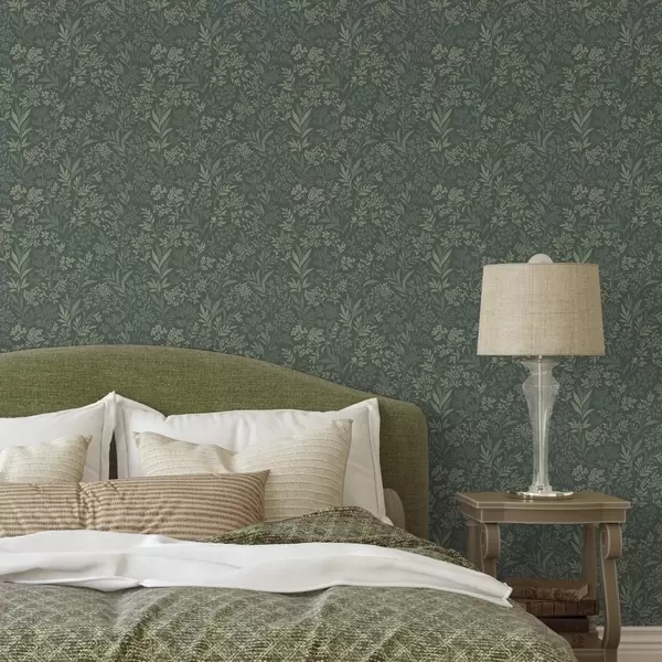 Behang Smaragdgroene grassen en bessen, fijn botanisch patroon Nr. a00740
