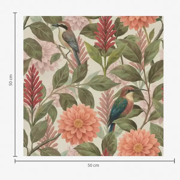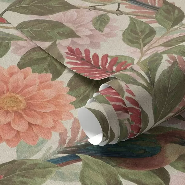 Behang Vogels tussen bloemen en bladeren in warme tinten Nr. a00753