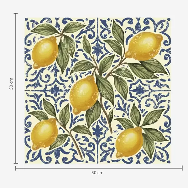Behang Citroentakken met blauwe decoratieve achtergrond Nr. a00763