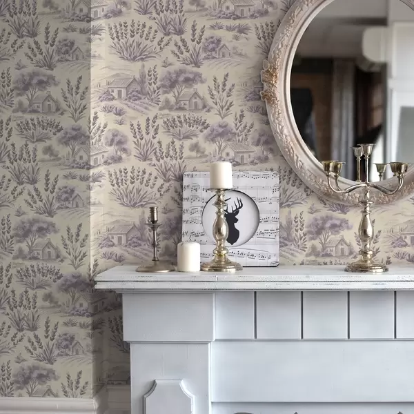 Behang Lavendelvelden en huizen in pasteltinten Nr. a00765