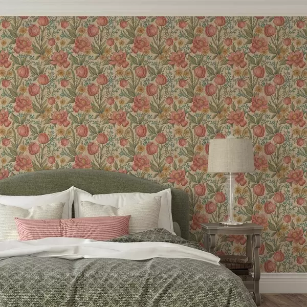 Behang Vintage tulpen en asters, crèmekleurige achtergrond met textuur Nr. a00773