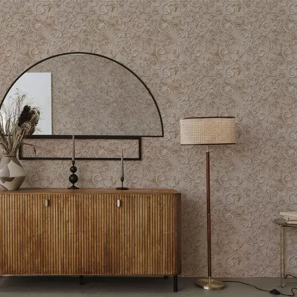 Behang Stenen reliëf met bloemmotieven, vintage beige Nr. a00784