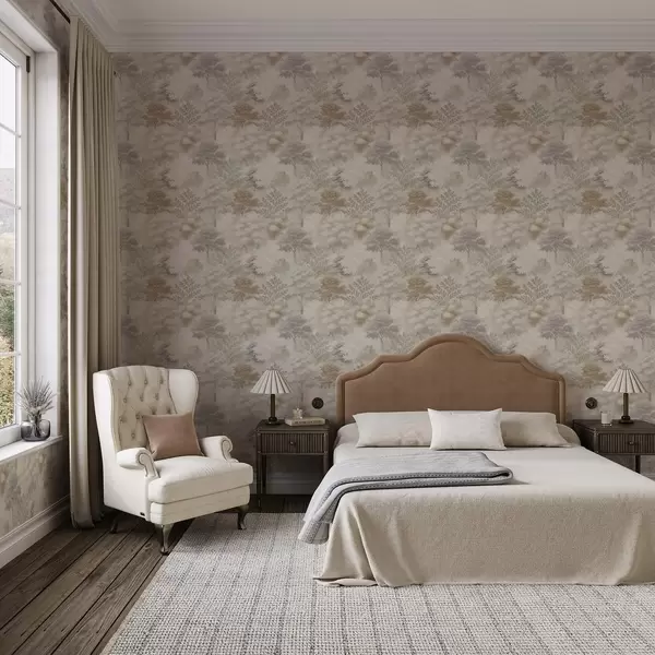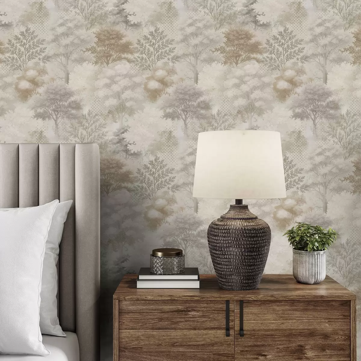 Behang Zacht bos in mist, zachte beige-grijze tinten Nr. a00785