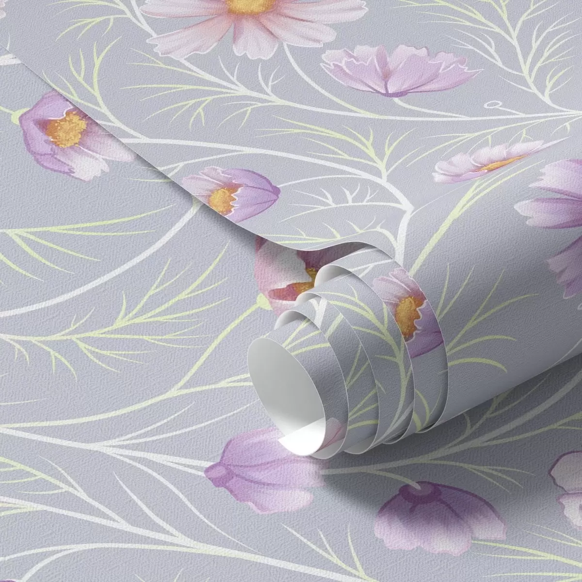 Behang Roze cosmos en slanke stelen op een grijze achtergrond Nr. a00791