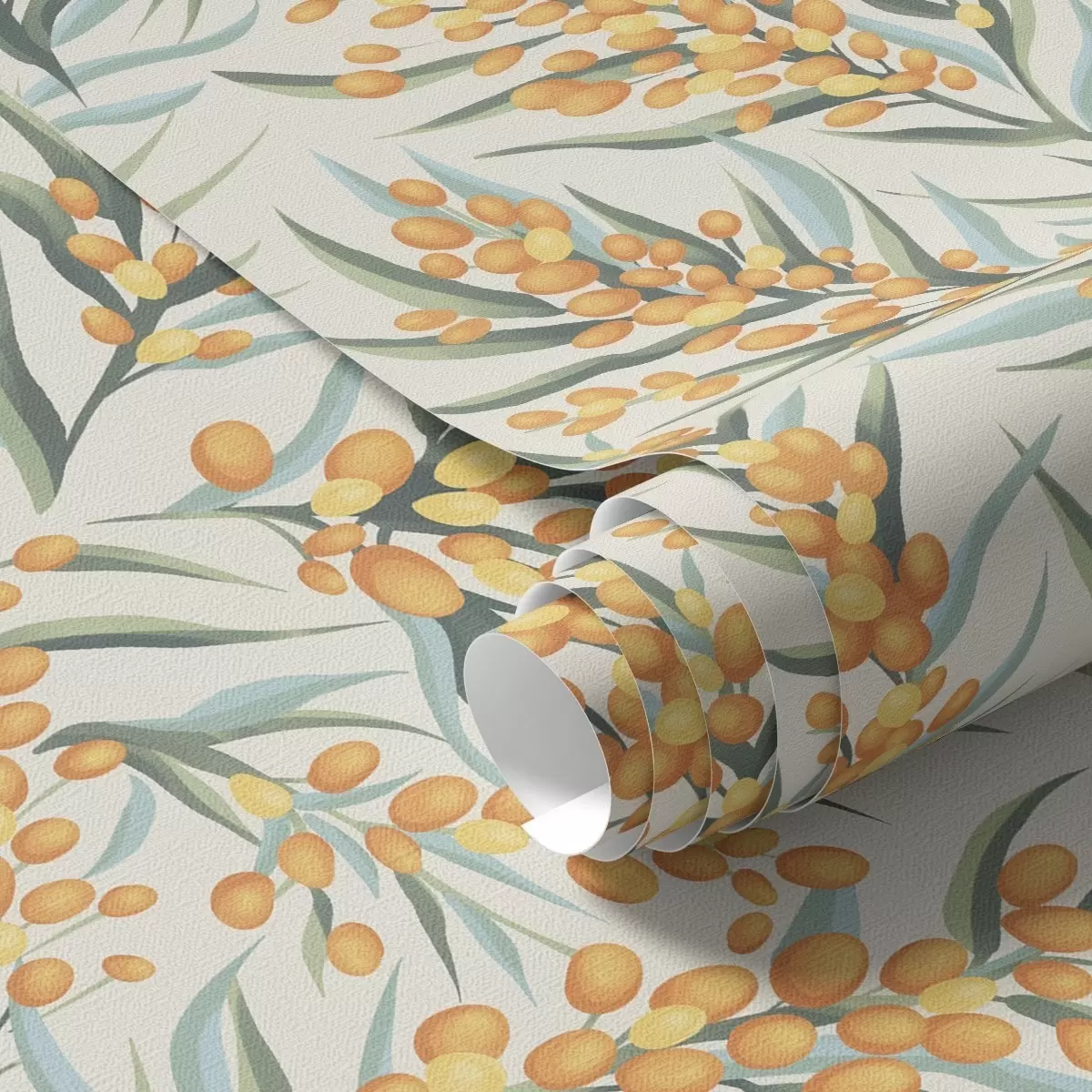 Behang Duindoorn takken met oranje bessen, lichte achtergrond Nr. a00792