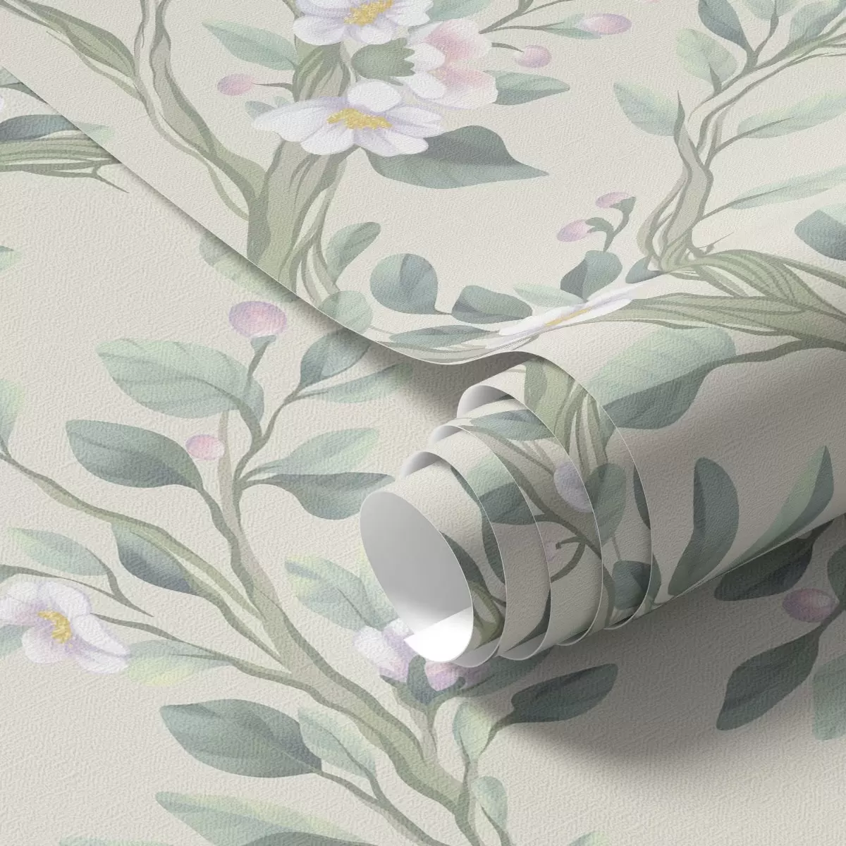 Behang Delicate bloeiende takken op een crèmekleurige achtergrond, pastel Nr. a00793