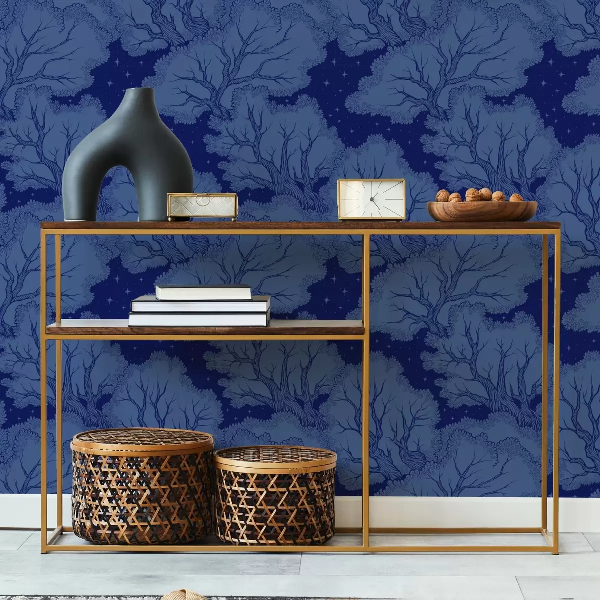 Behang Silhouetten van bomen onder een sterrenhemel in blauwtinten Nr. a00798