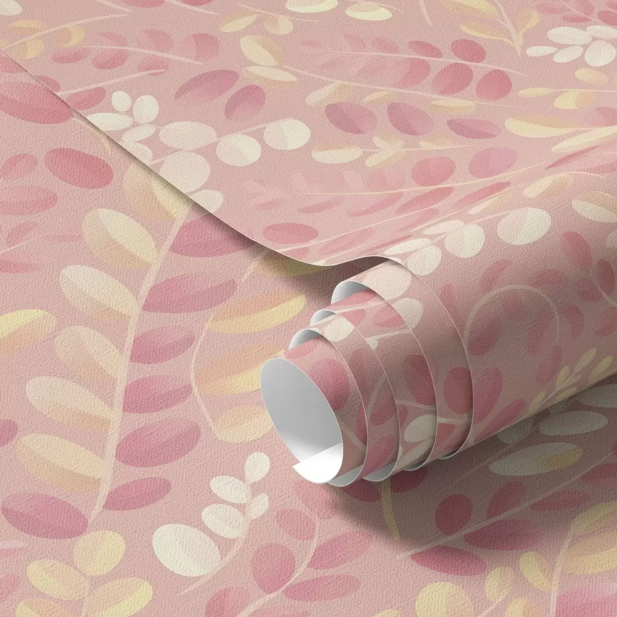 Behang Delicaat roze-perzikkleurig blad met een zachte glans Nr. a00799