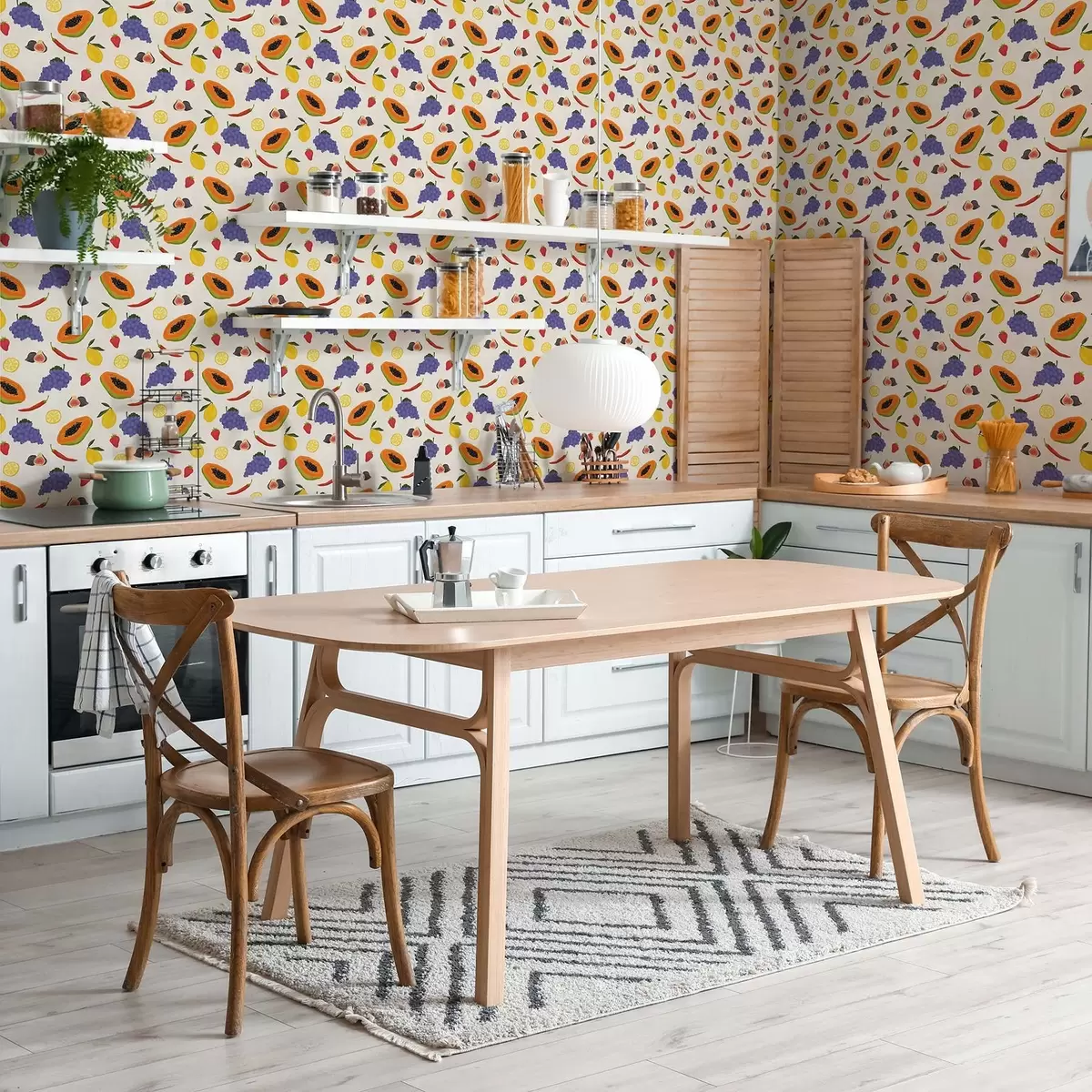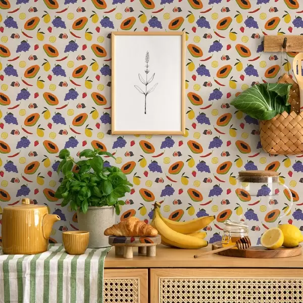 Behang Papaja, druiven en citroenen — een kleurrijke fruitmix Nr. a00803