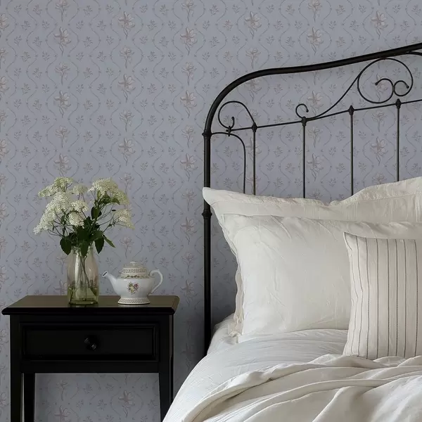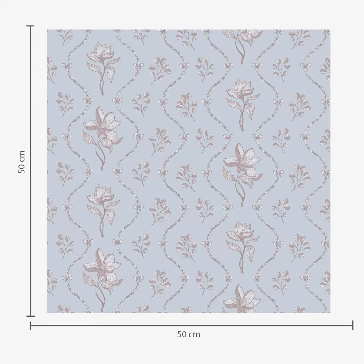 Behang Kleine bloemen en linten in lichtblauwe tinten Nr. a00808v1
