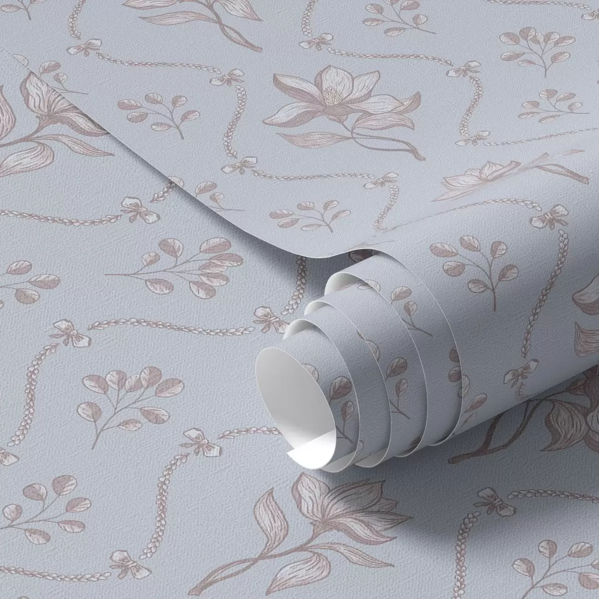 Behang Kleine bloemen en linten in lichtblauwe tinten Nr. a00808v1