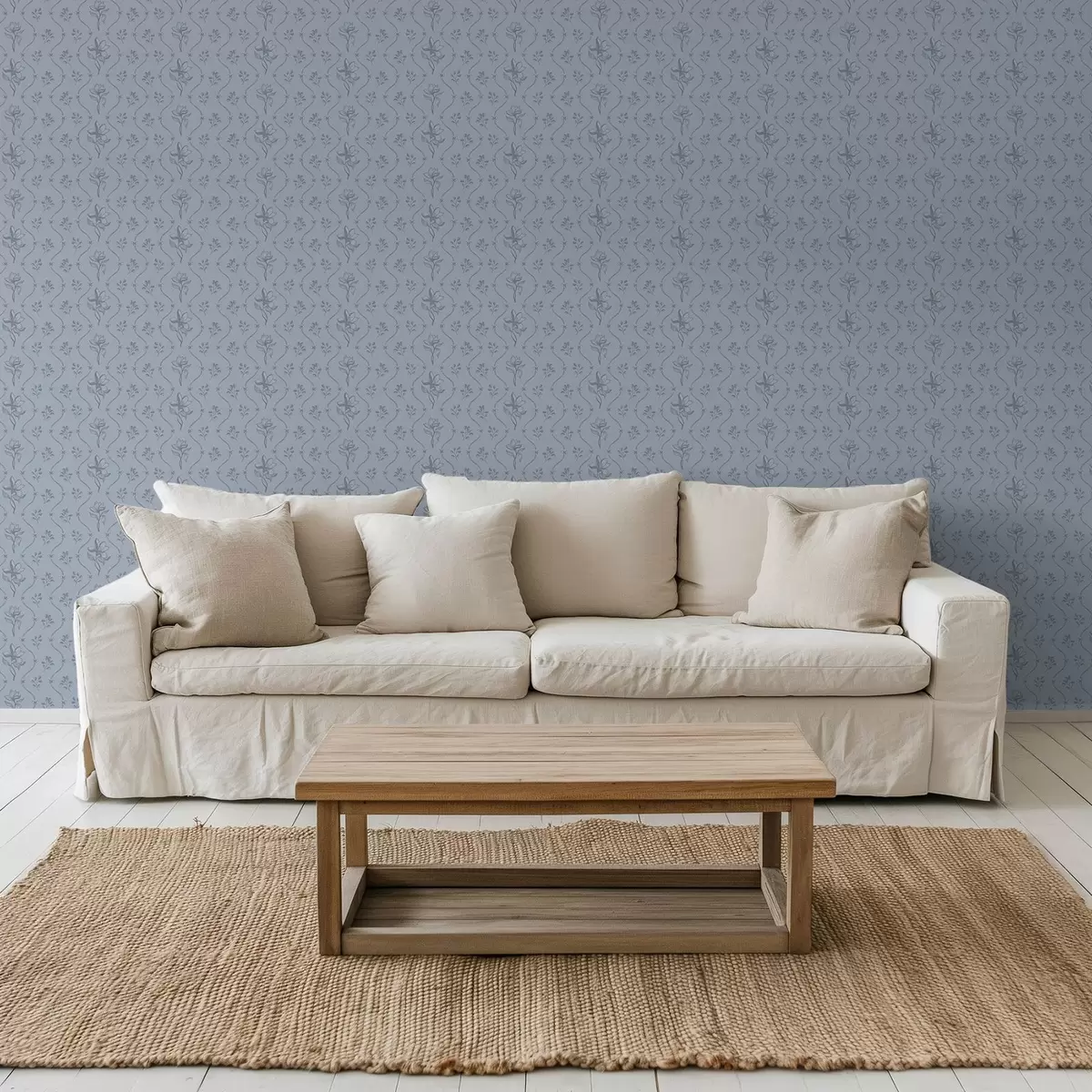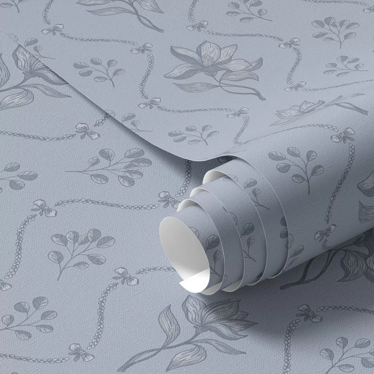 Behang Kleine bloemen en linten in grijsblauwe kleuren Nr. a00808v2