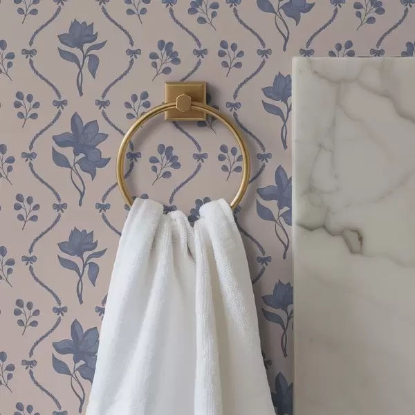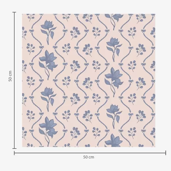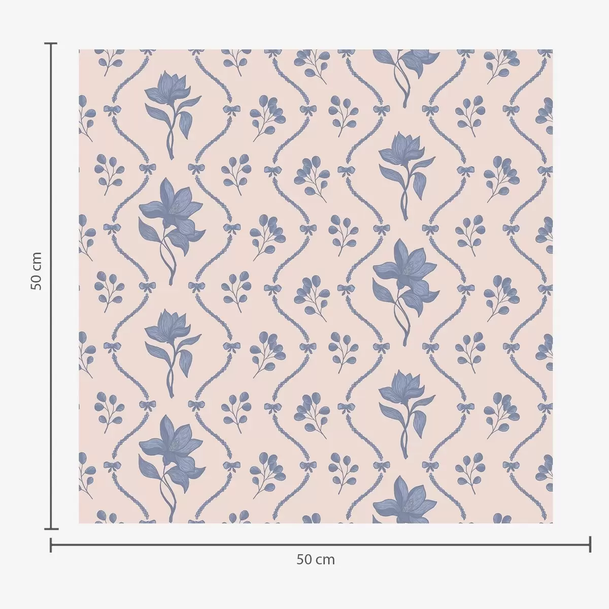 Behang Kleine bloemen en linten in blauwe en roze tinten Nr. a00808v3
