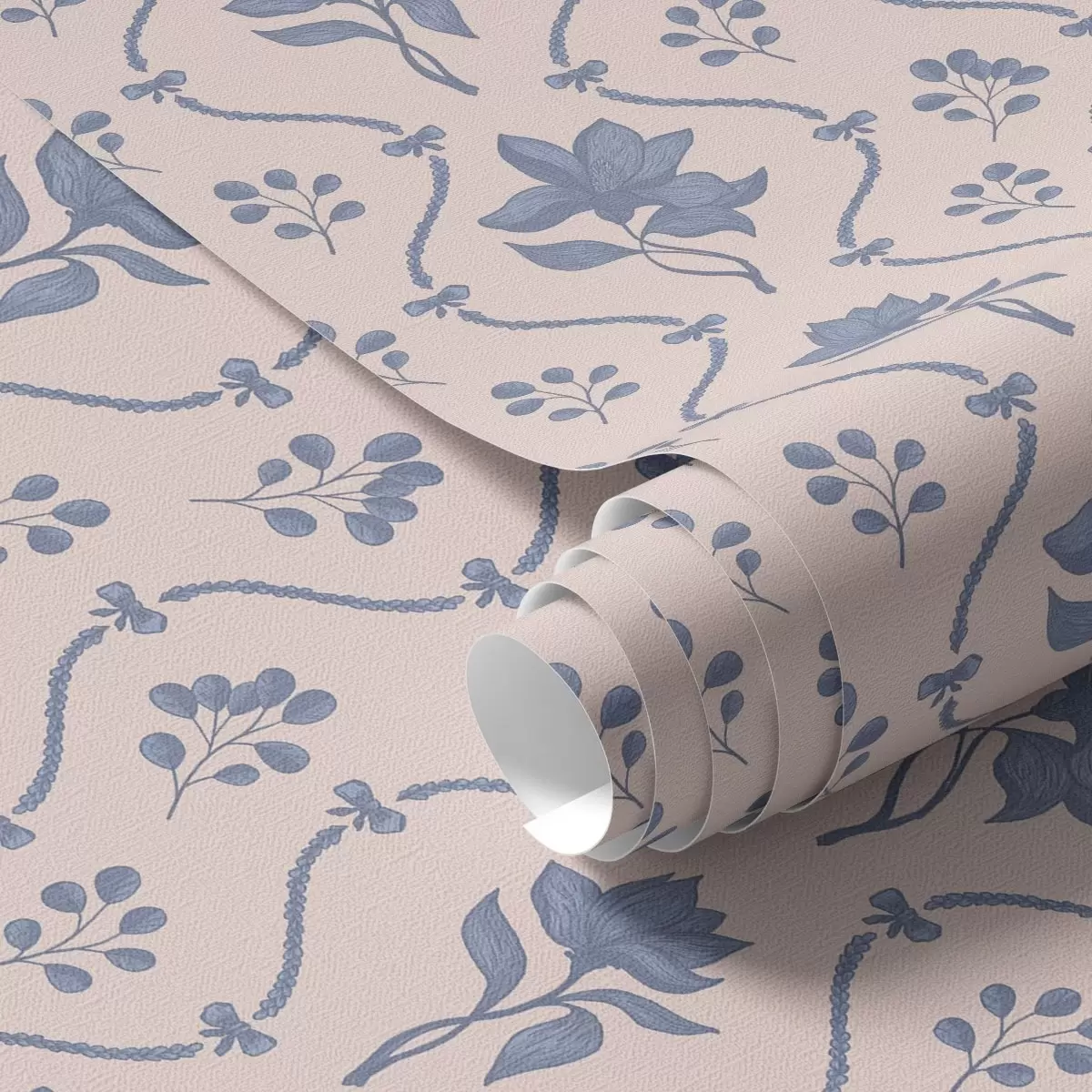 Behang Kleine bloemen en linten in blauwe en roze tinten Nr. a00808v3