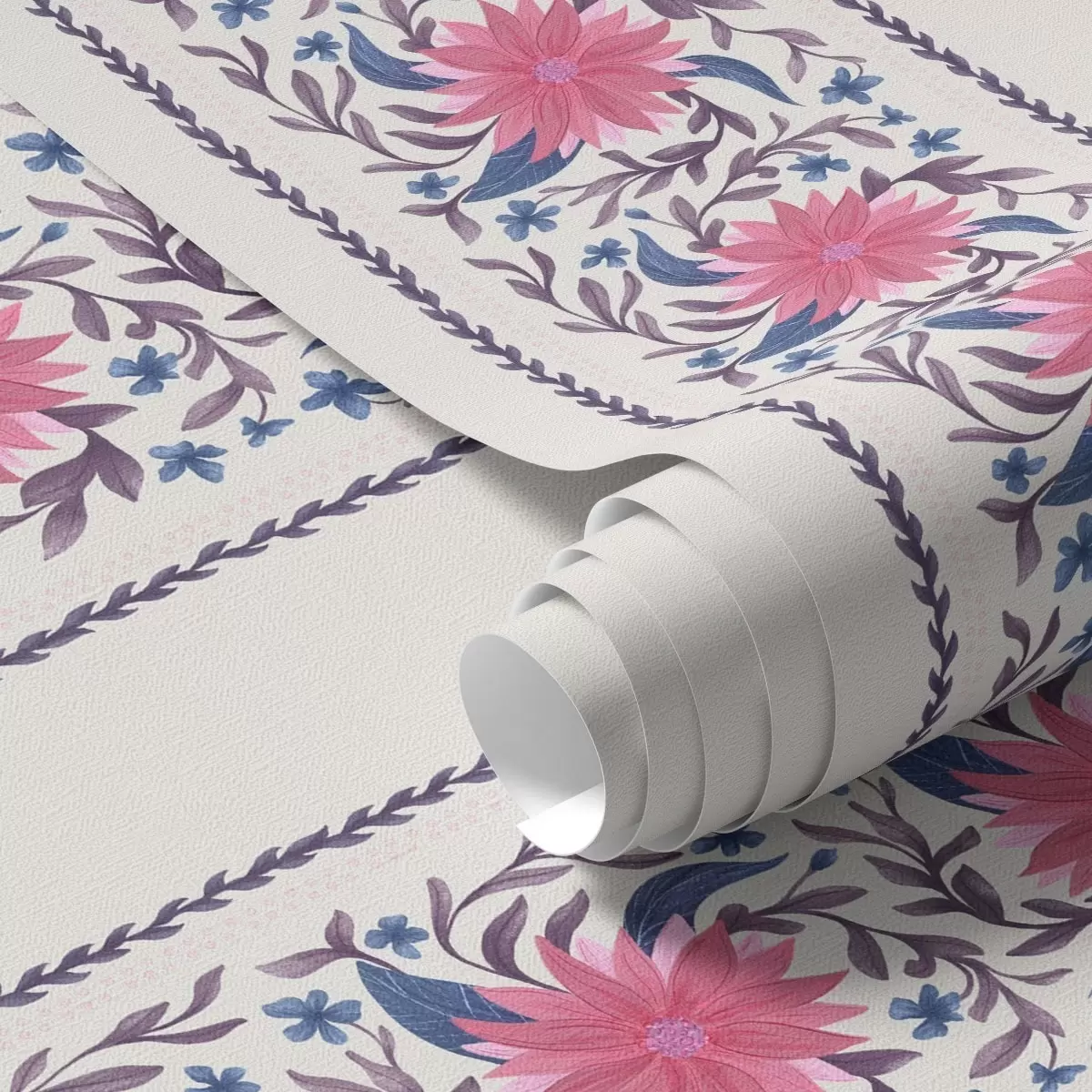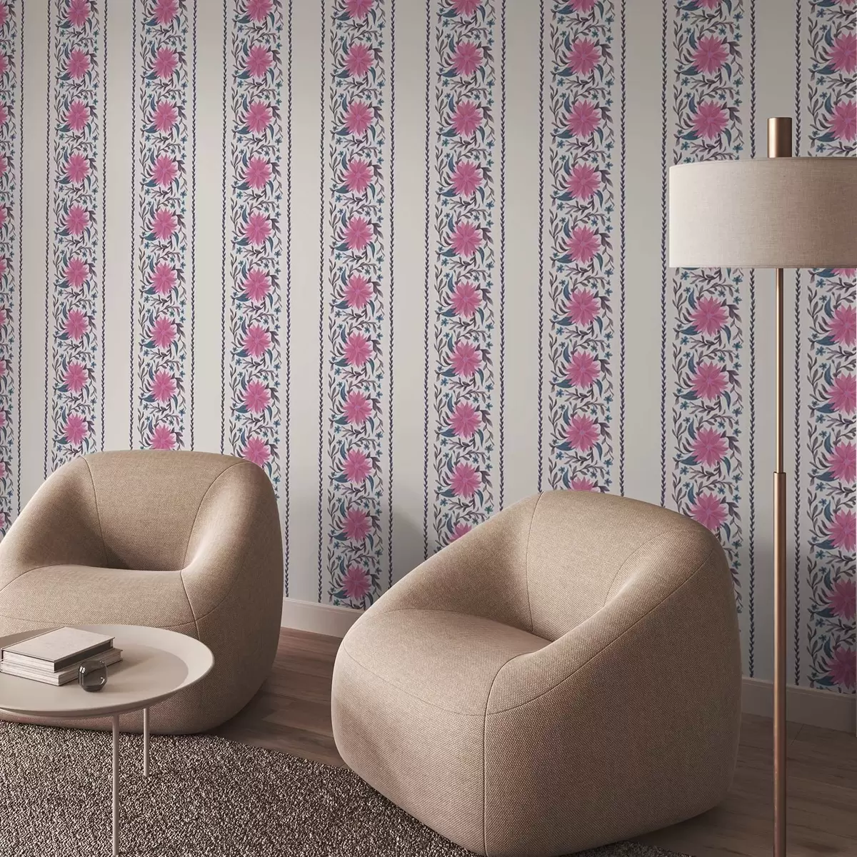 Behang Verticale bloemenstrepen in roze-paarse tinten Nr. a00810