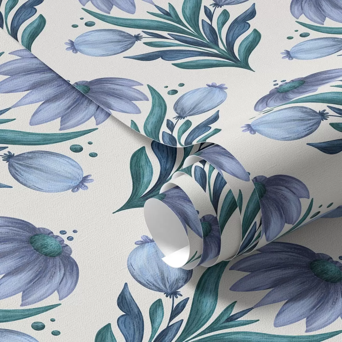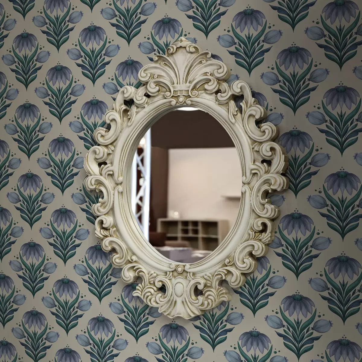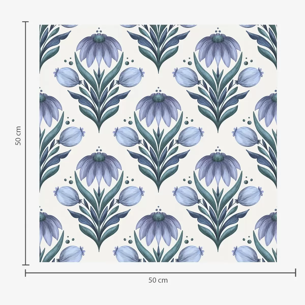 Behang Symmetrisch bloemenornament in blauw-witte tinten Nr. a00812v2