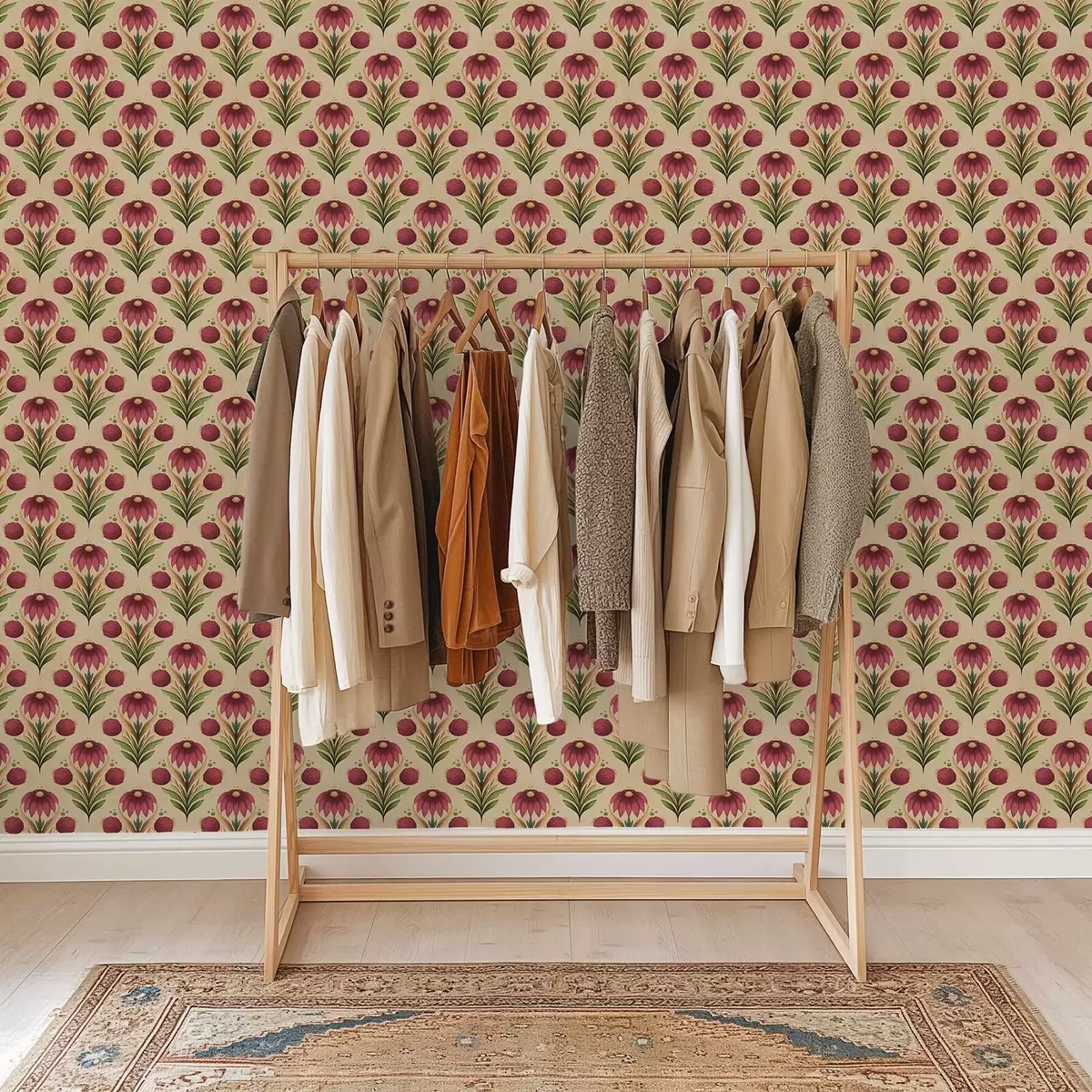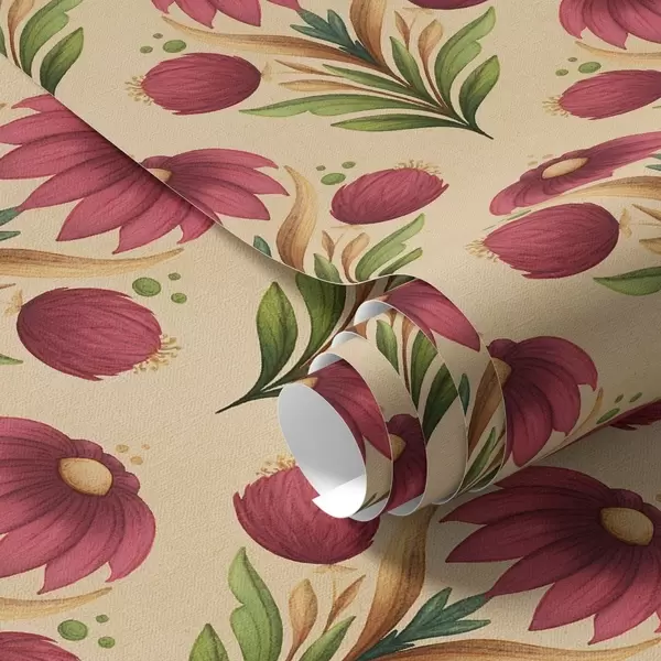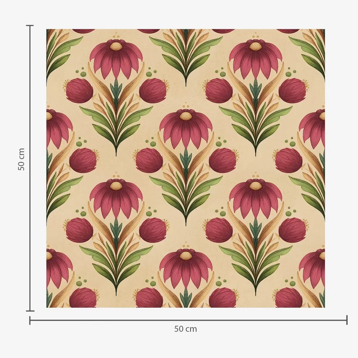 Behang Symmetrisch bloemenornament op warme beige achtergrond Nr. a00812v6