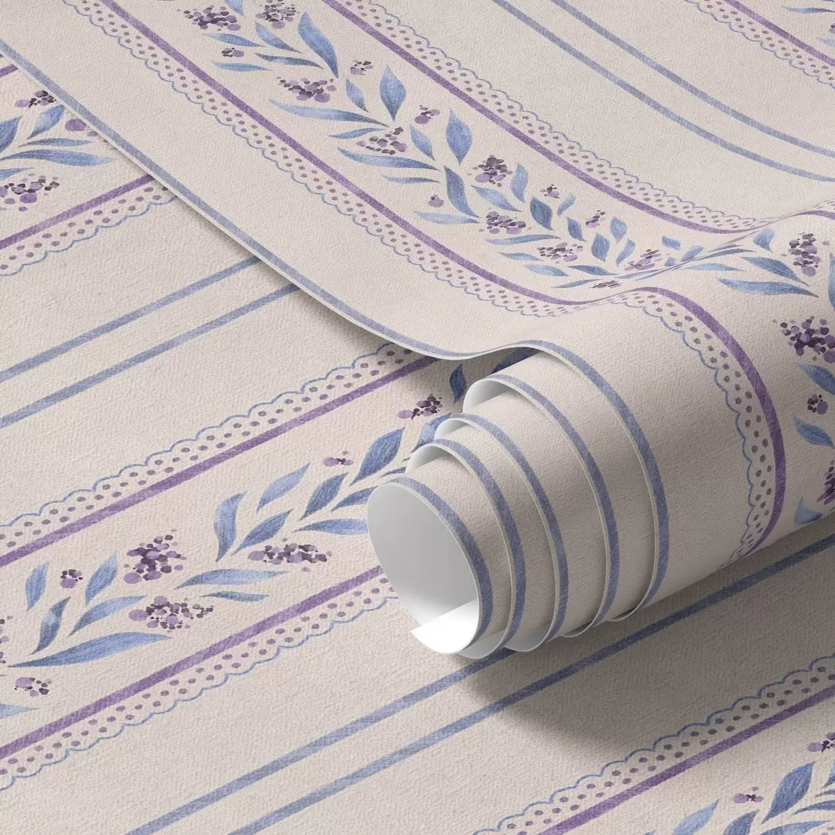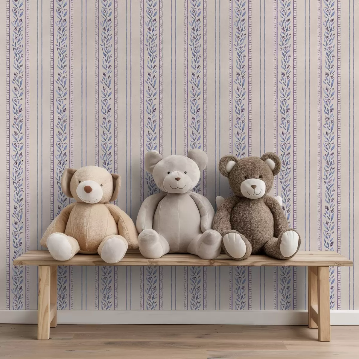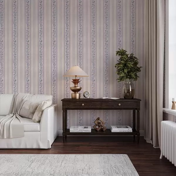 Behang Verticale strepen met lavendelkleurige vignetten, warm beige Nr. a00813