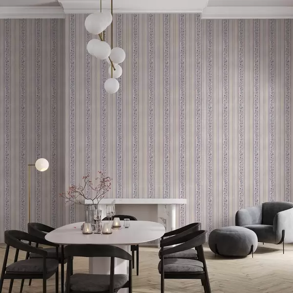Behang Verticale strepen met lavendelkleurige vignetten, warm beige Nr. a00813