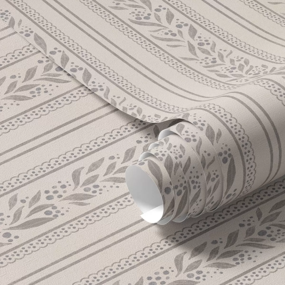 Behang Strepen met kant en grijs-beige takjes Nr. a00814