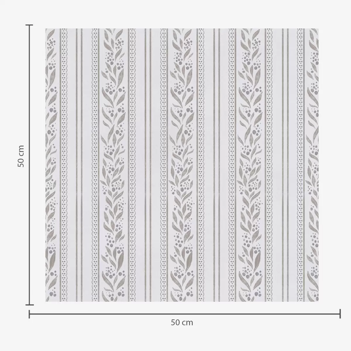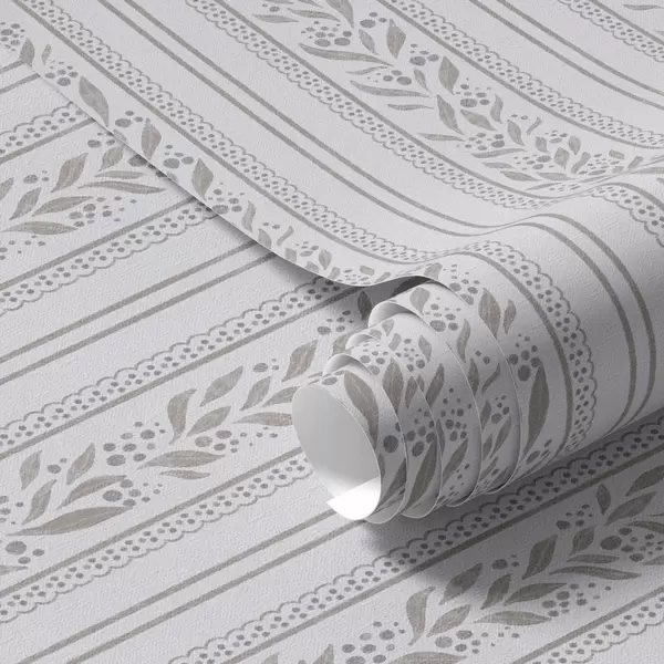 Behang Strepen met kant en takjes op koel wit Nr. a00814v1