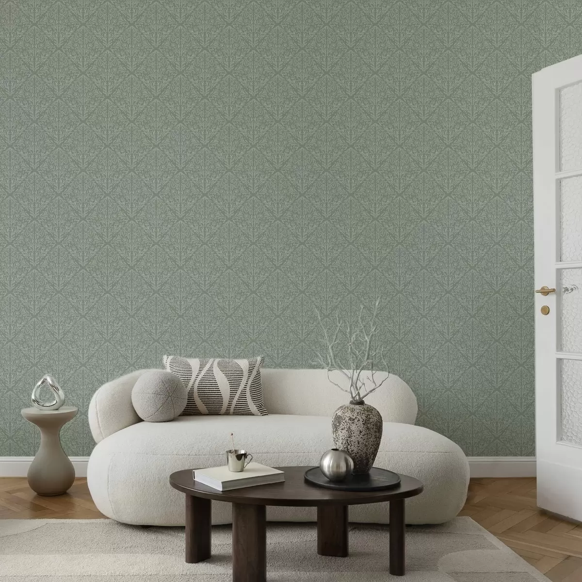 Behang Botanisch damast op mint-olijfgroene achtergrond Nr. a00815