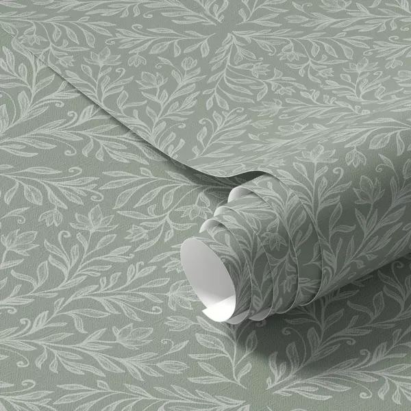 Behang Botanisch damast op mint-olijfgroene achtergrond Nr. a00815