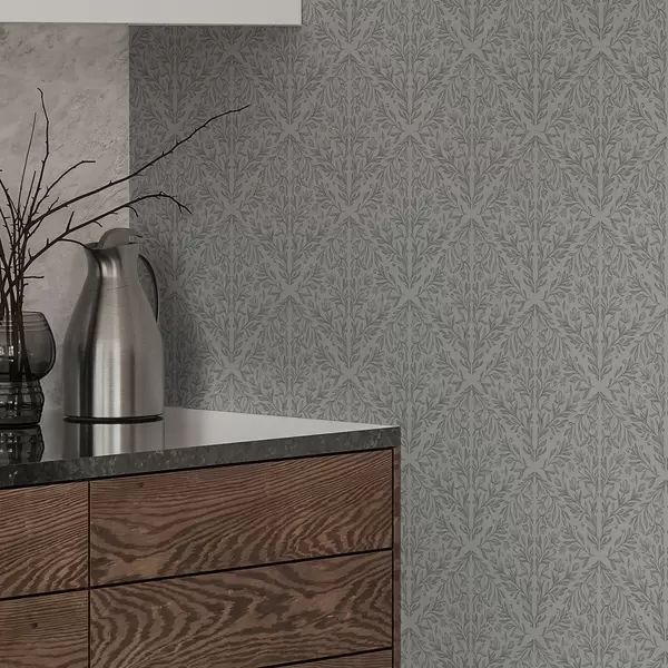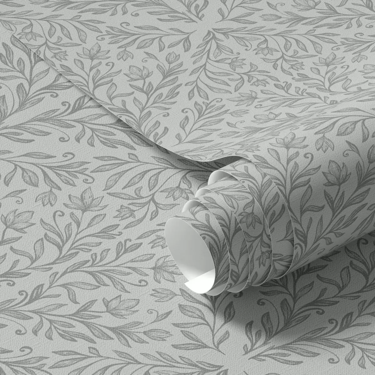 Behang Botanisch damast in lichtgrijs met zachte contouren Nr. a00815v2