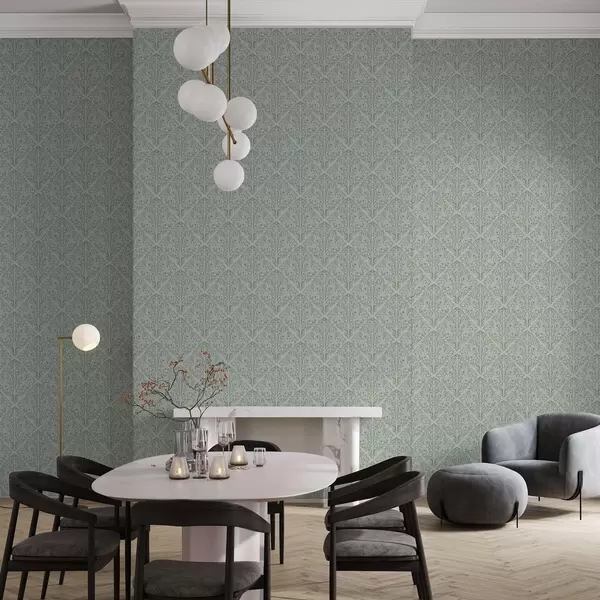 Behang Lacy schiet op pastelgroen, zachte diepte Nr. a00815v3