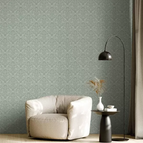 Behang Lacy schiet op pastelgroen, zachte diepte Nr. a00815v3