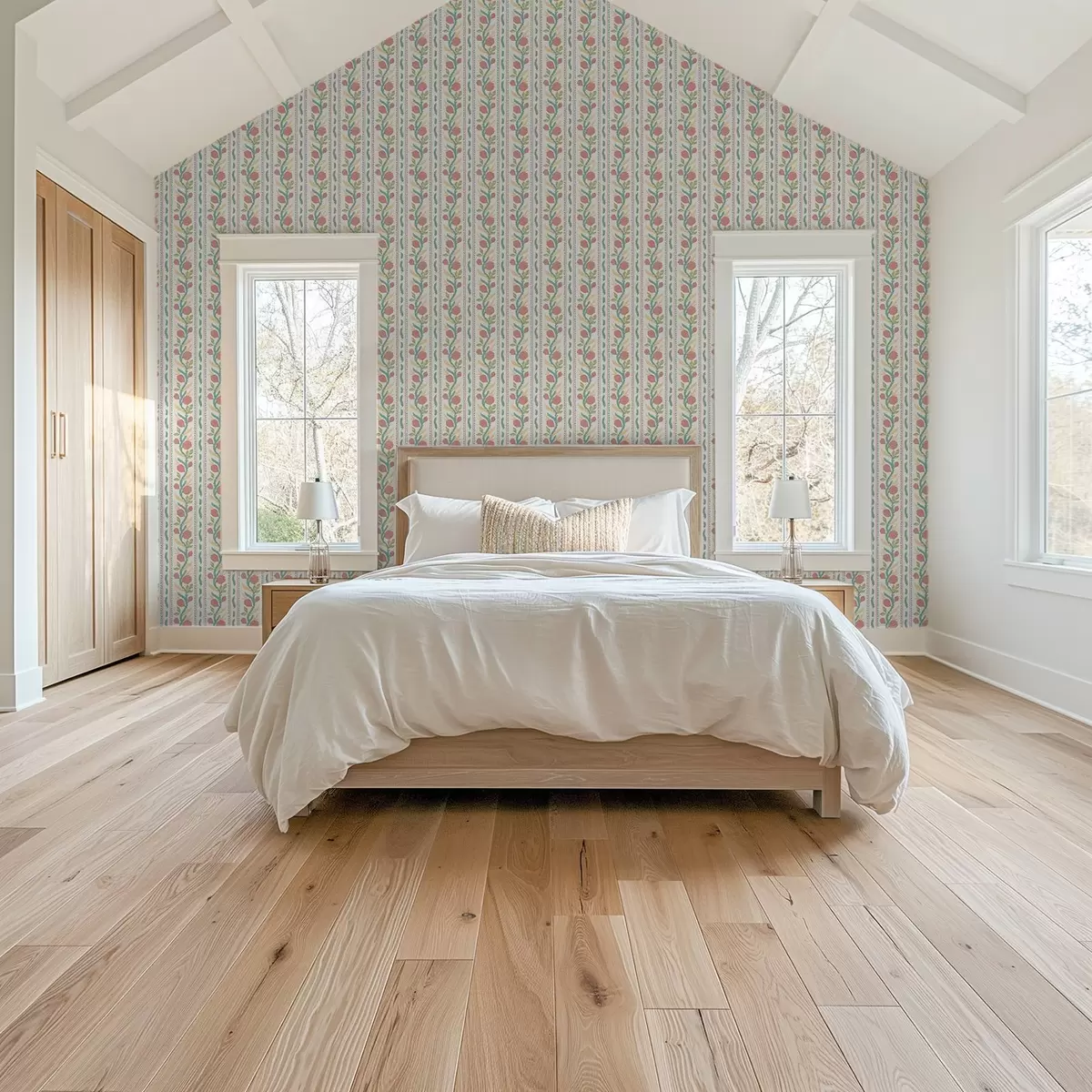 Behang Strepen met koraalknopjes op een licht crèmekleurige achtergrond Nr. a00816v1