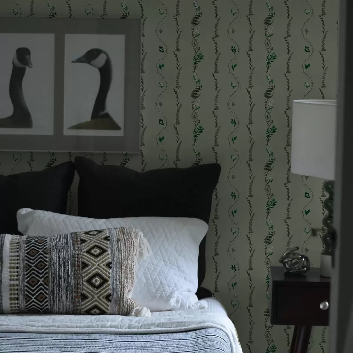 Behang Verticale ranken en takjes op gedempt groen Nr. a00817v1