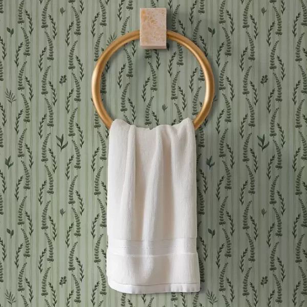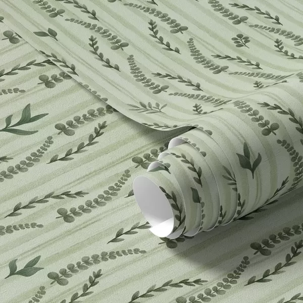 Behang Dichtbegroeid groen gras en scheuten op munt met strepen Nr. a00819